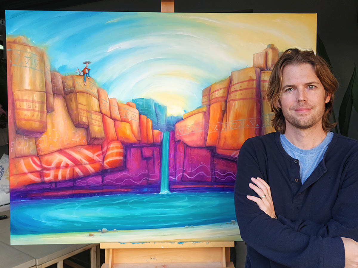 Born and raised in Perth, Peter’s creative journey began in animation and scriptwriting, studying at Curtin University and training under a Disney animation scriptwriter from Los Angeles. In 2009, he made the leap into professional painting, and his work has since become instantly recognisable across Australia.